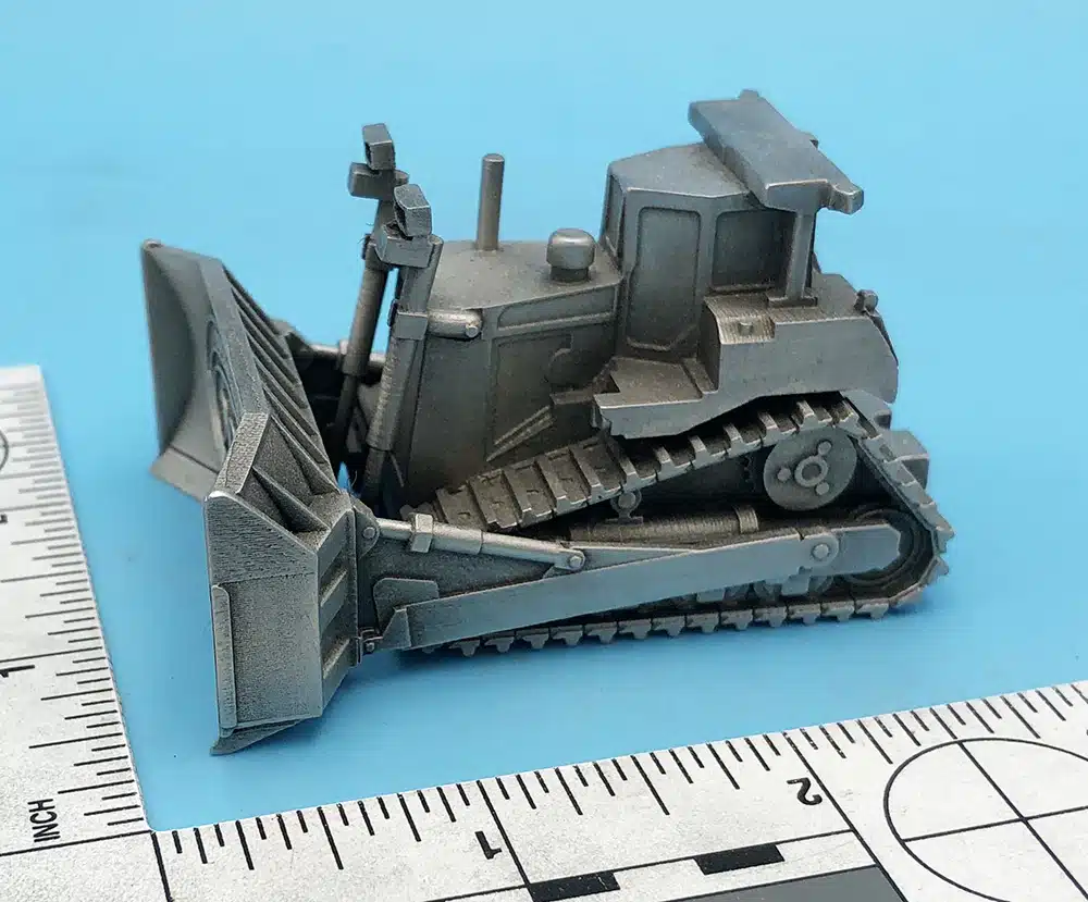 Mining machine, continuous miner type, 4″ long with custom logo. Antique pewter finish